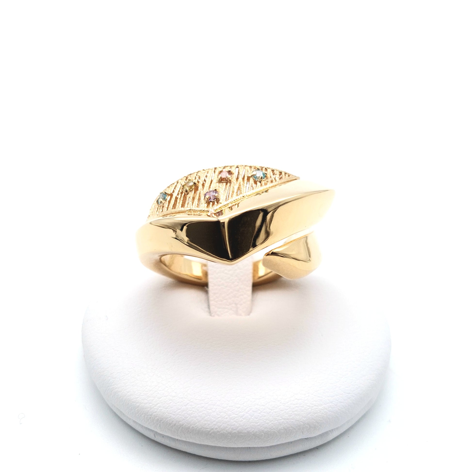 Anello in oro giallo 18 KT in elettroformatura con zirconi bianchi. AN-ORO085.