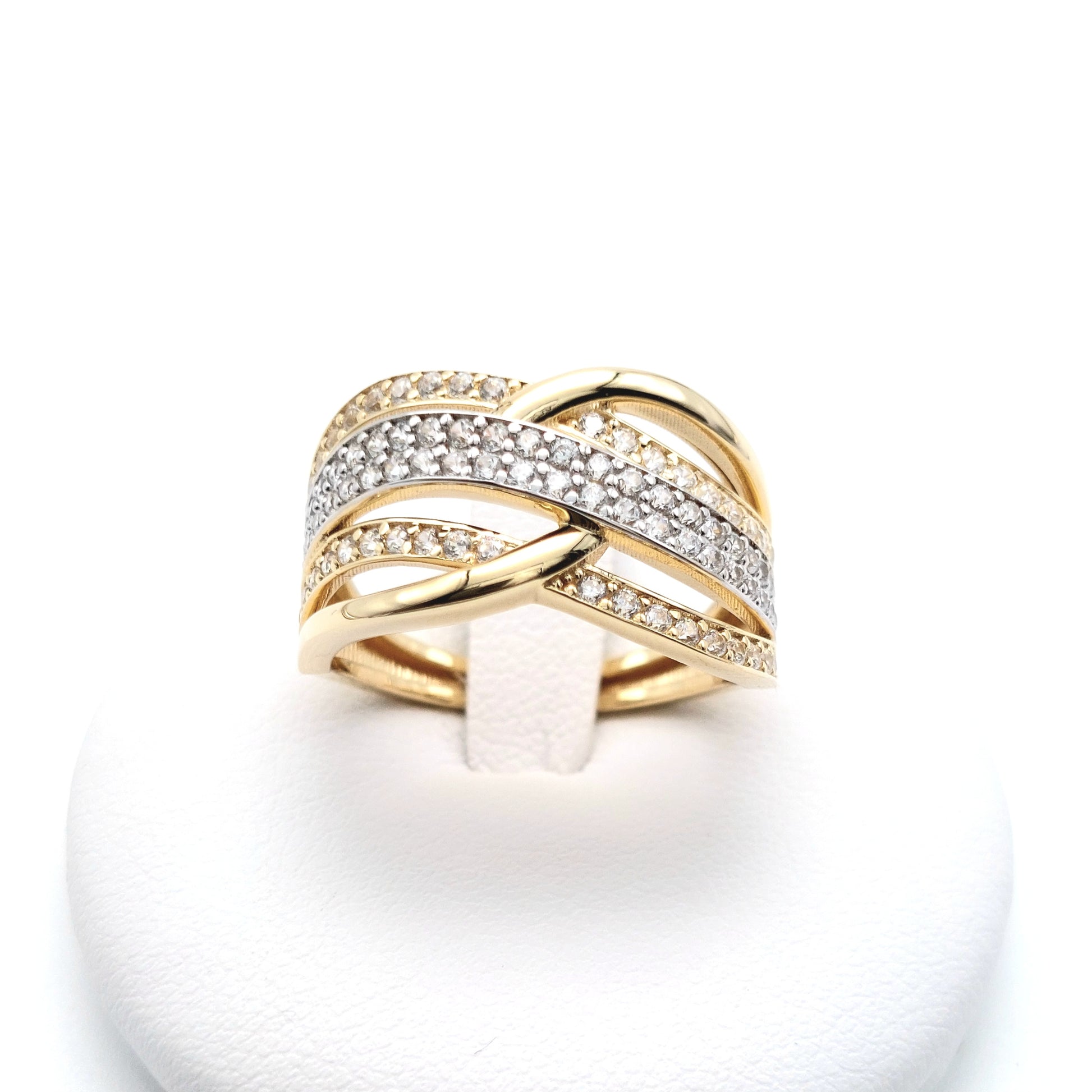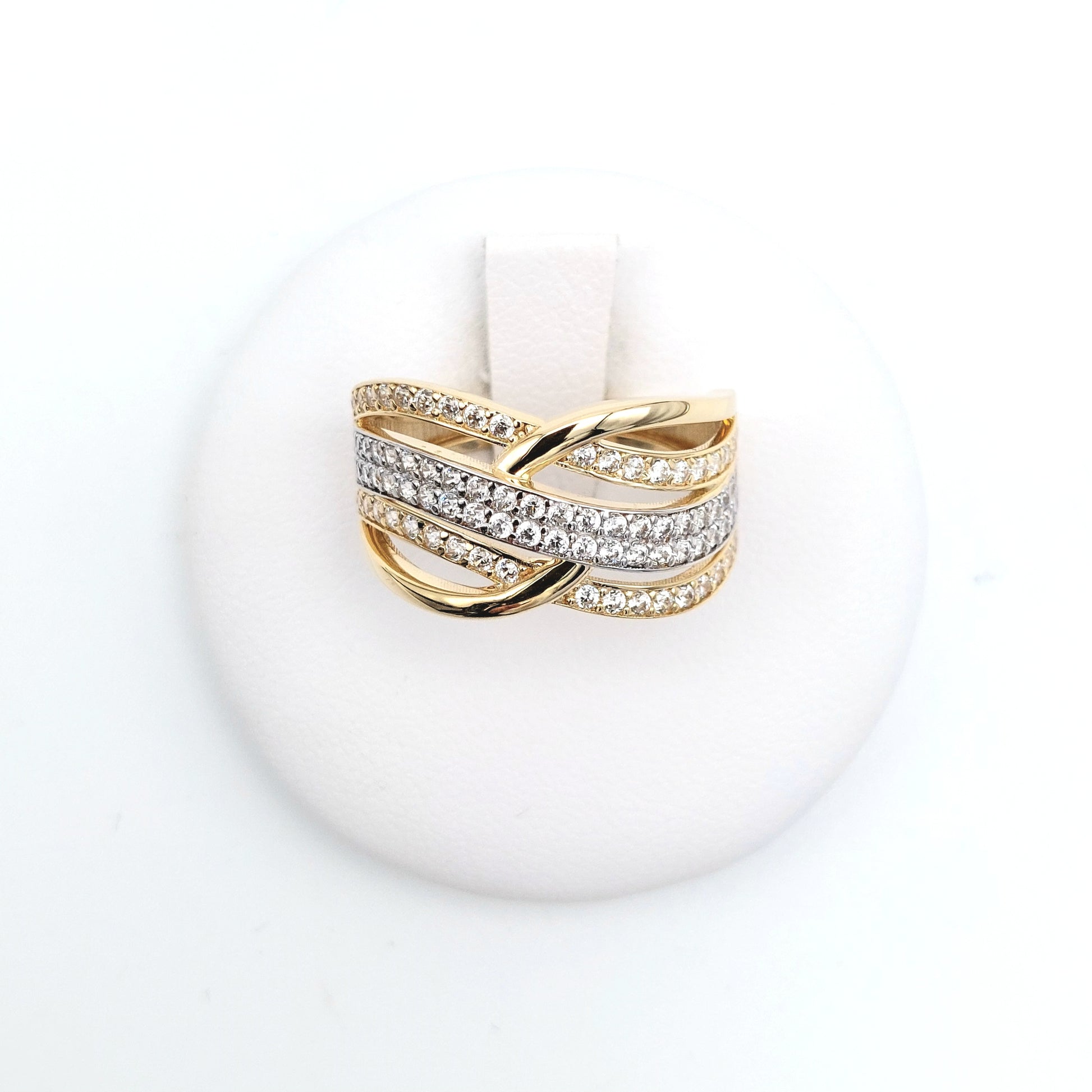 Anello in oro giallo e bianco 18 KT con zirconi bianchi. AN-ORO079.