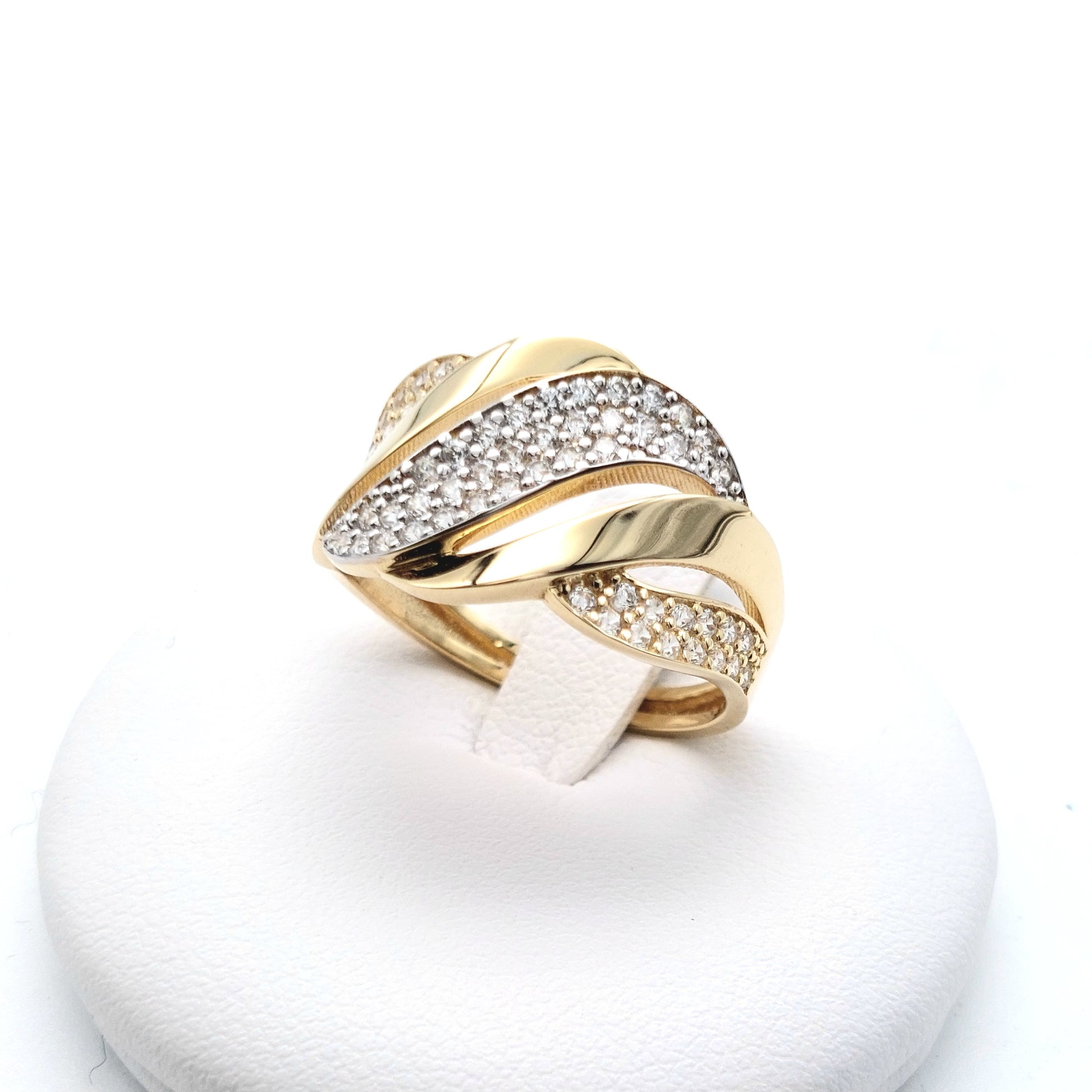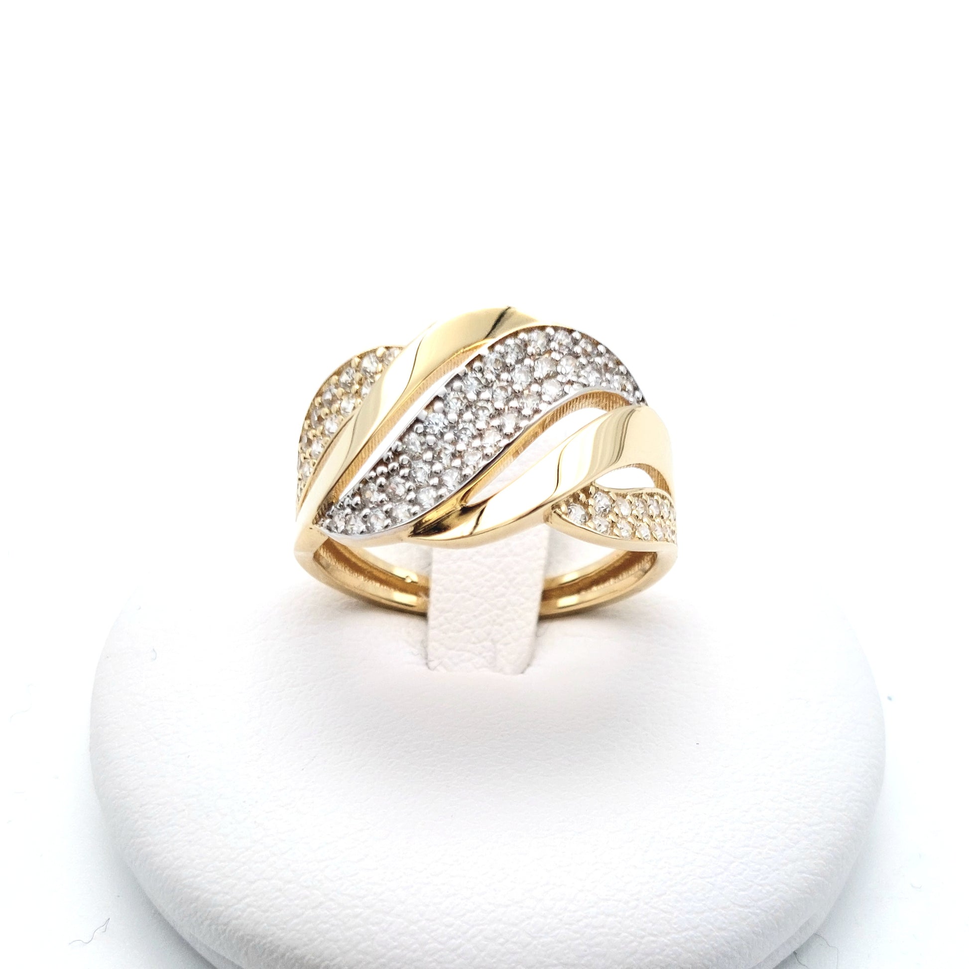 Anello in oro giallo e bianco 18 KT con zirconi bianchi. AN-ORO084.
